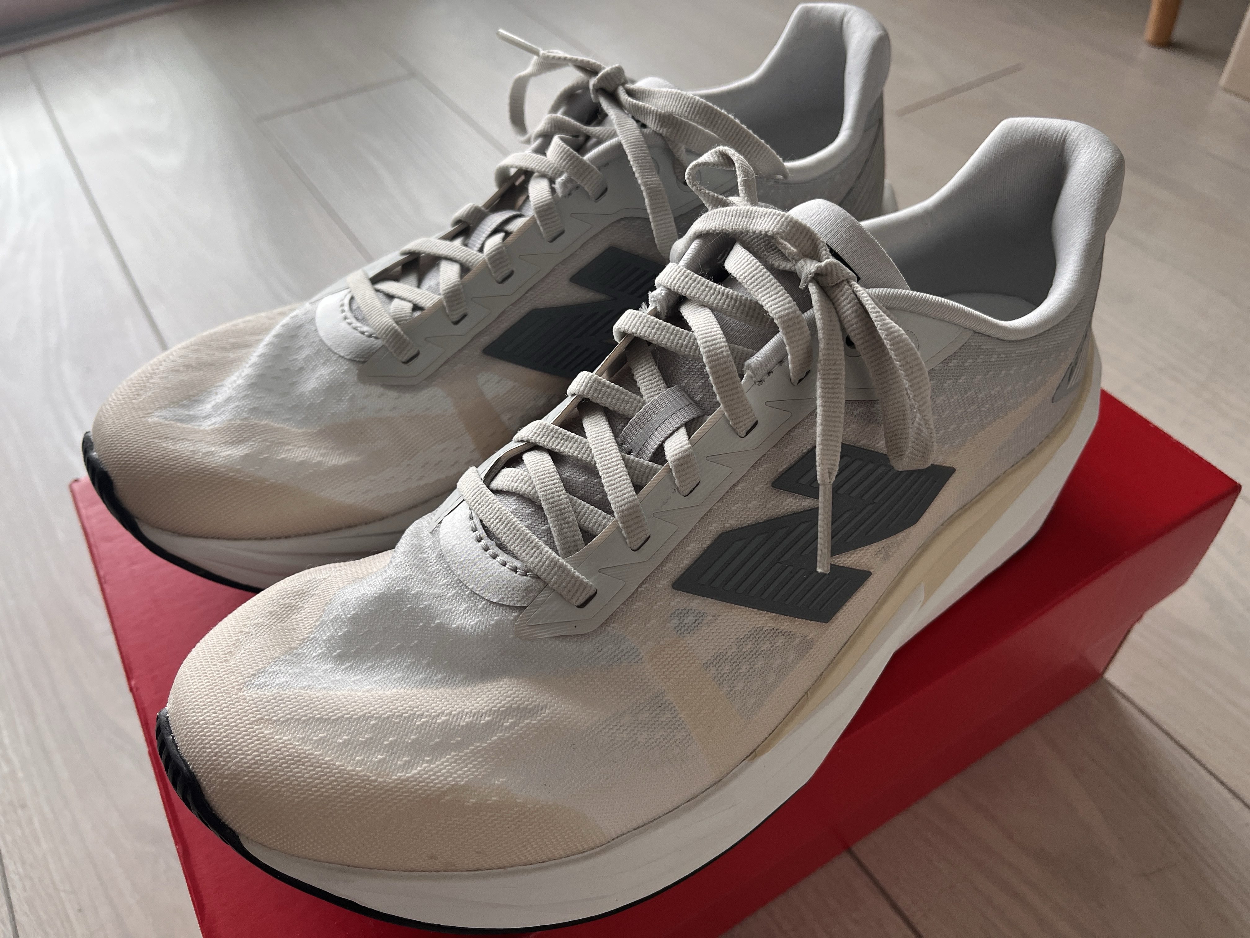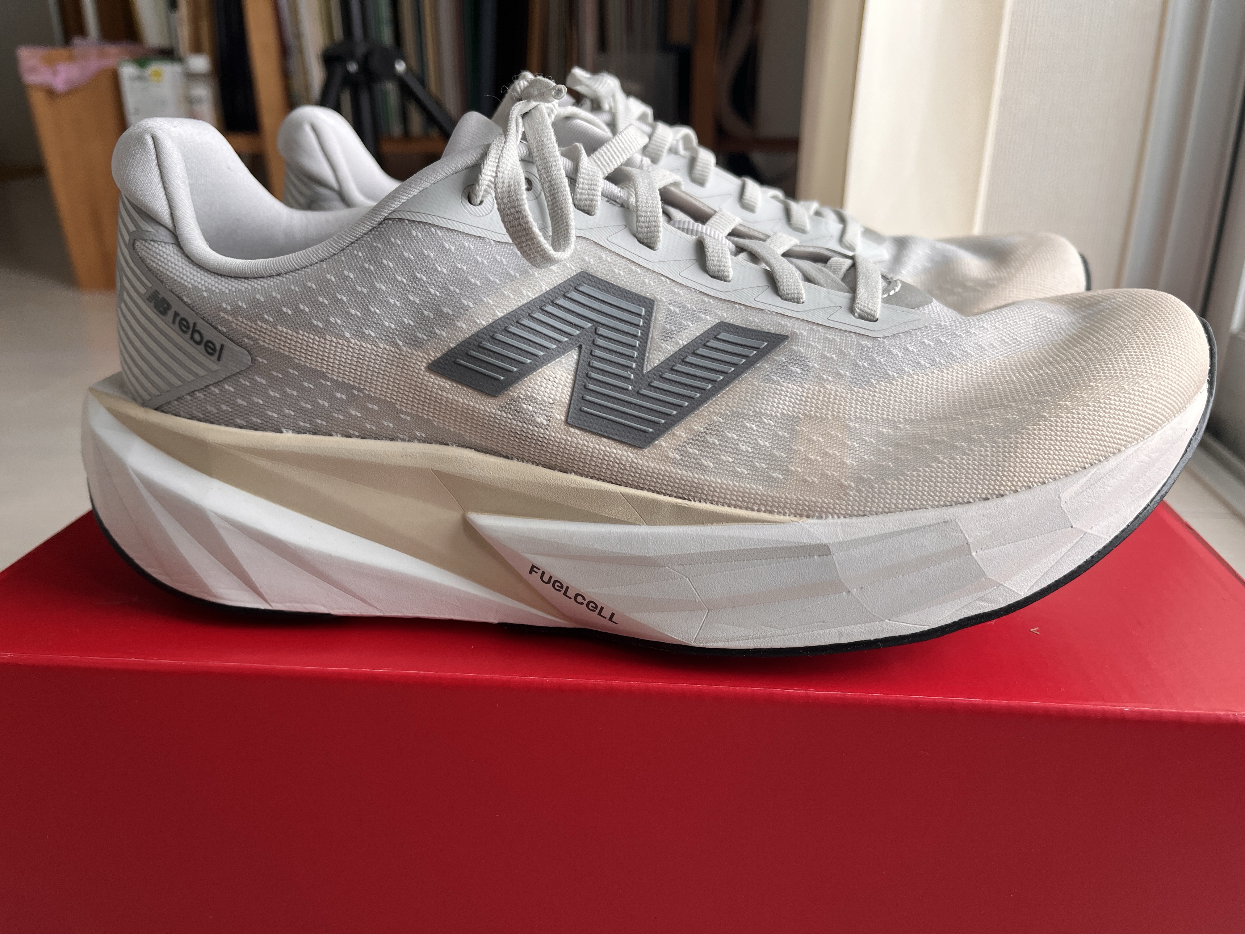 ニューバランスFuelCell Rebel V5。 シューズ X Facebook はてブ LINE コピー 2025.12.05 スポンサーリンク ニューバランスFuelCell Rebel V5 購入。 [ニューバランス] メンズ FuelCell Rebel v5ランニングシューズ軽量性・反発性に優れた万能モデル「FuelCell Rebel」がv5にアップデート。v4より厚みが増したPEBA配合のFuelCellミッドソールが、クッション性に加えスピードが上がるほど弾む反発性もプラス。最適な厚みのネオプレーン調素材... Rebel V3からの買い替えのイメージ。 重さは224グラム(28.0cm)。 レベルV3 (218グラム)よりは微増。 でも、これだけ厚い感じになってそれだけしか違わないとは。 早速、履いてみたが、さすが、安心のニューバランス。 まだ走ってないが、何の問題もなさそうな安心感。 湘南国際マラソン2日前。 もちろん、いきなりレースで使うつもりなんてなかったのだが。。 いやいやダメだ!そんなセオリー無視の起用は。